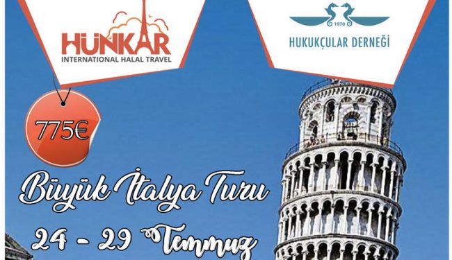24-29 Temmuz tarihleri arasında Hukukçular Derneği olarak Büyük İtalya Turu isimli gezimizi Hünkar Turizm ile birlikte gerçekleştireceğiz. Güzergah şu şekilde olacaktır: BARI – ROMA – NAPOLİ – FLORANSA – VENEDİK – SIRMIONE – COMO – LOGANO – MİLANO Gezilecek şehirlere ve tüm detaylara aşağıda yer verdiğimiz ilan görselimizden ve word dökümanımızdan ulaşabilirsiniz. Atatürk Hava Limanı’ndan…