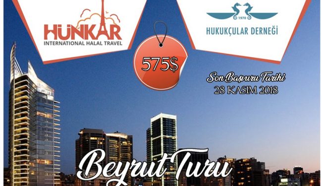 Hukukçular Derneği Gezi Komisyonu olarak dördüncü yurtdışı gezimizi Beyrut’a düzenliyoruz. 10 Ocak 2019 Perşembe akşamı saat 20:30’da gidip, 14 Ocak Pazartesi sabah 06:30 da İstanbul’da olacağız inşallah. 40 kişilik sınırlı bir kontenjanımız mevcut olup son başvuru tarihi 28 Kasım 2018’dir. Bu tarihten önce kontenjanın dolma ihtimali yüksek olduğundan acele edilmesini öneririz. Ücret 575 USD olup…