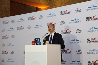 Hukukçular Derneği Genel Başkanı Avukat Cavit Tatlı konuşmasında Türkiye’de hukuk alanında yaşanan sıkıntılardan bahsederek avukatların karşılaştıkları meslekî sorunlara dikkat çekti. Bakan Gül’den, avukatlara yönelik yeşil pasaport uygulaması getirilmesini talep eden Başkan Tatlı, bu konuda bakandan yardım sözü istedi.