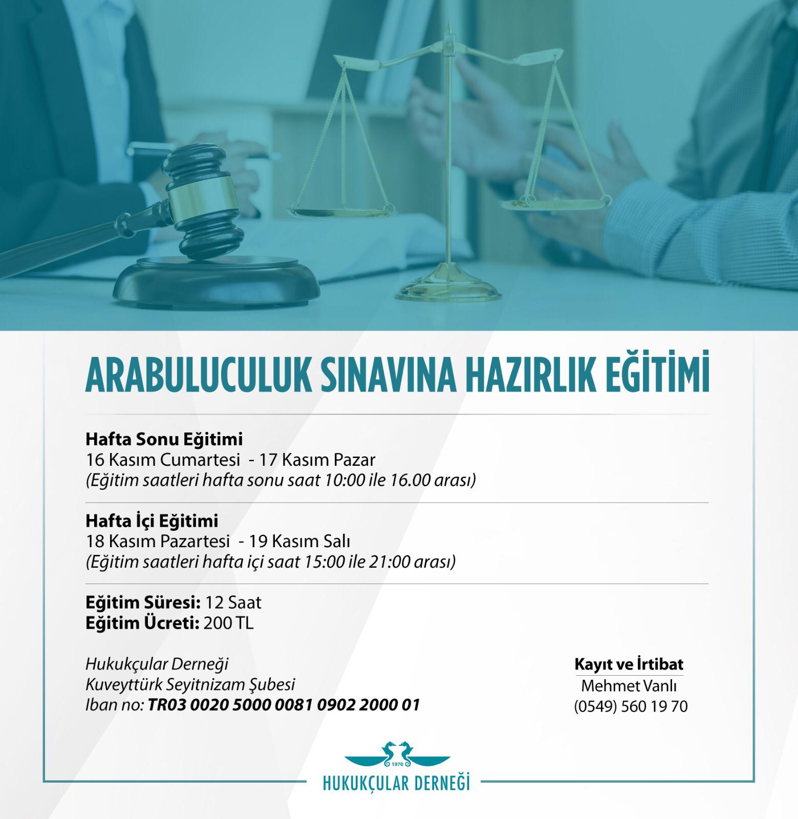 🔹 Derneğimiz, 24.11.2019 tarihinde yapılacak olan Arabuluculuk Sınavı’na hazırlık için “Hafta İçi” ve “Hafta Sonu” olmak üzere iki ayrı eğitim programı düzenlemiştir.