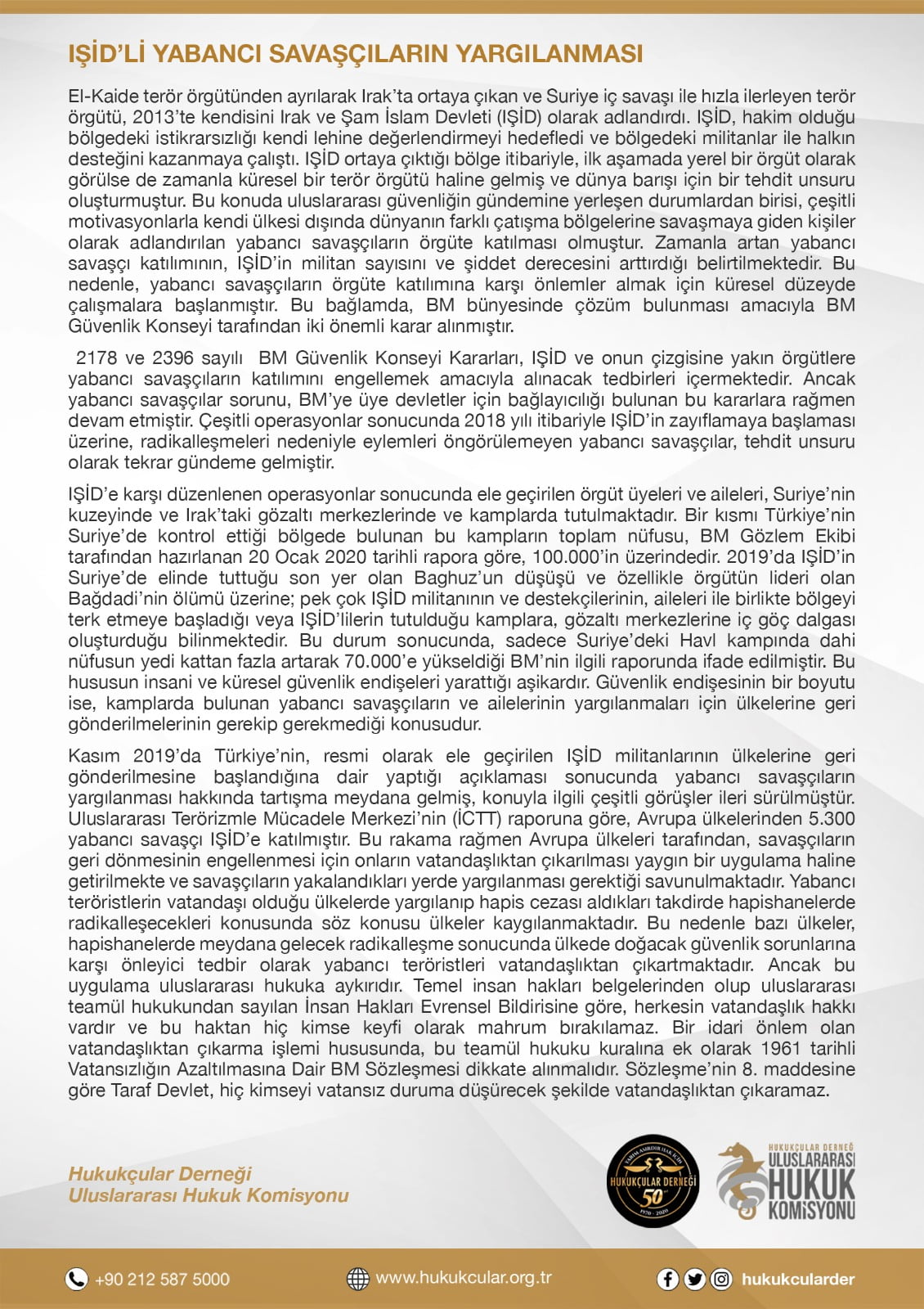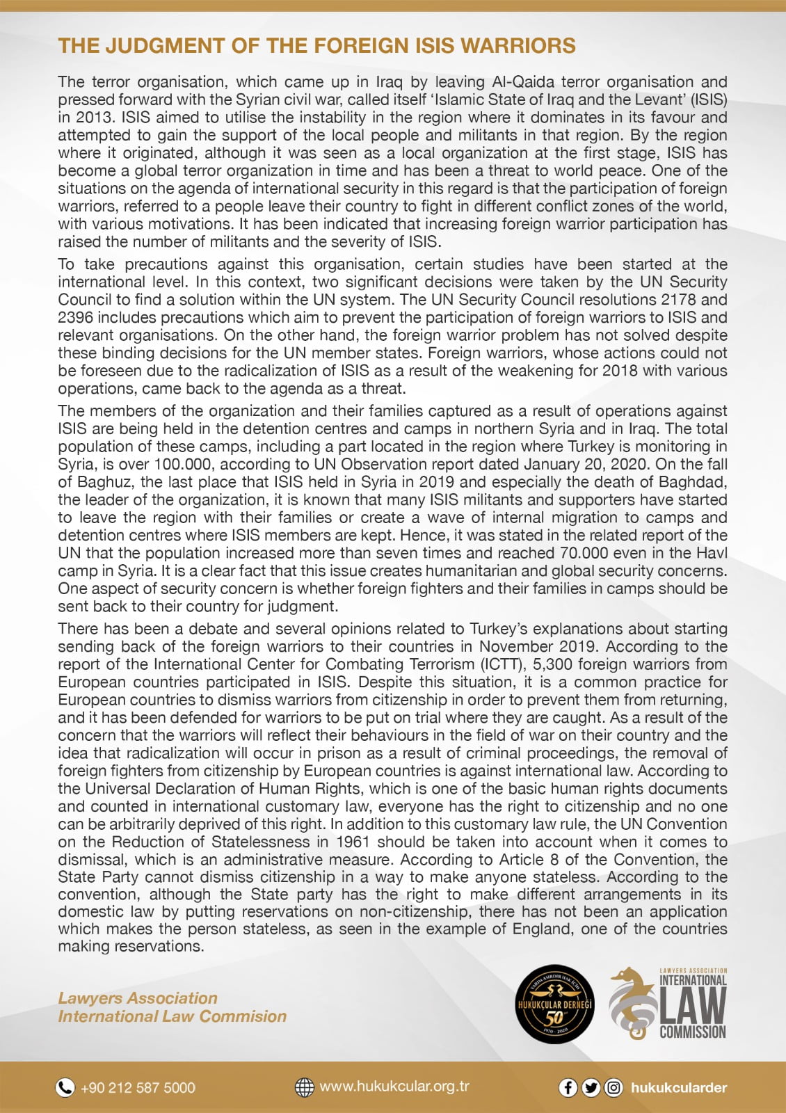 THE JUDGMENT OF THE FOREIGN ISIS WARRIORS The terror organisation, which came up in Iraq by leaving Al-Qaida terror organisation and pressed forward with the Syrian civil war, called itself ‘Islamic State of Iraq and the Levant’ (ISIS) in 2013. ISIS aimed to utilise the instability in the region where it dominates in its favour…