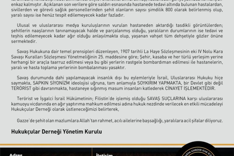 Eki162023 SOYKIRIMCI İSRAİL’İN GAZZE’DEKİ HASTANELERE DÜZENLEDİĞİ BOMBALI SALDIRI HAKKINDA BASIN AÇIKLAMAMIZ