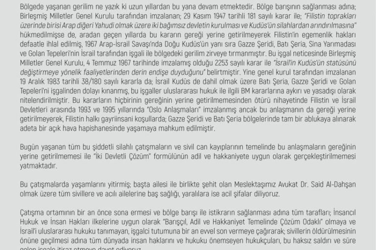 Ara72017 İŞGALCİ İSRAİL REJİMİNİN, AVUKAT MESLEKTAŞLARIMIZI HUKUKSUZ BİR ŞEKİLDE ESİR ETMESİNE YÖNELİK KINAMA BİLDİRİSİDİR