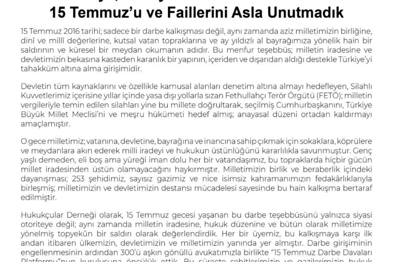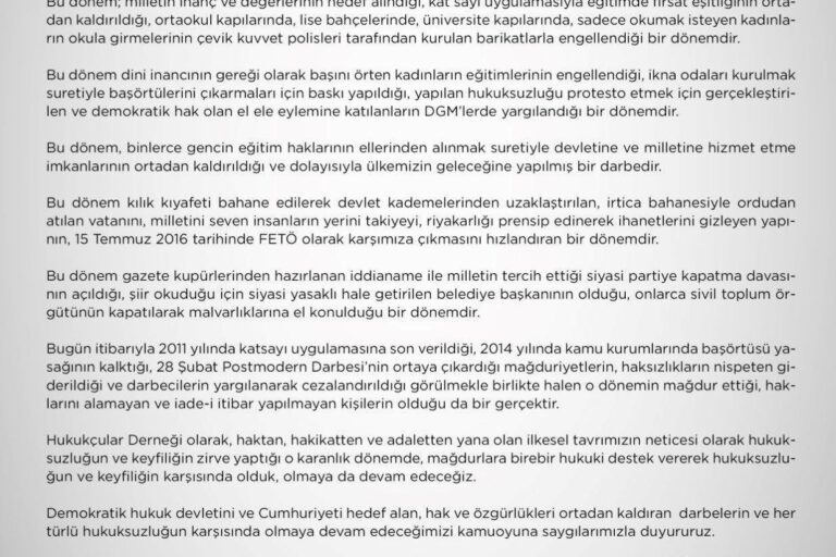 May272017 15 TEMMUZ DARBE TEŞEBBÜSÜ SONRASINDA YAPILAN YARGILAMALARA VE YAŞANAN HUKUKİ SÜREÇLERE DAİR BASIN AÇIKLAMASI
