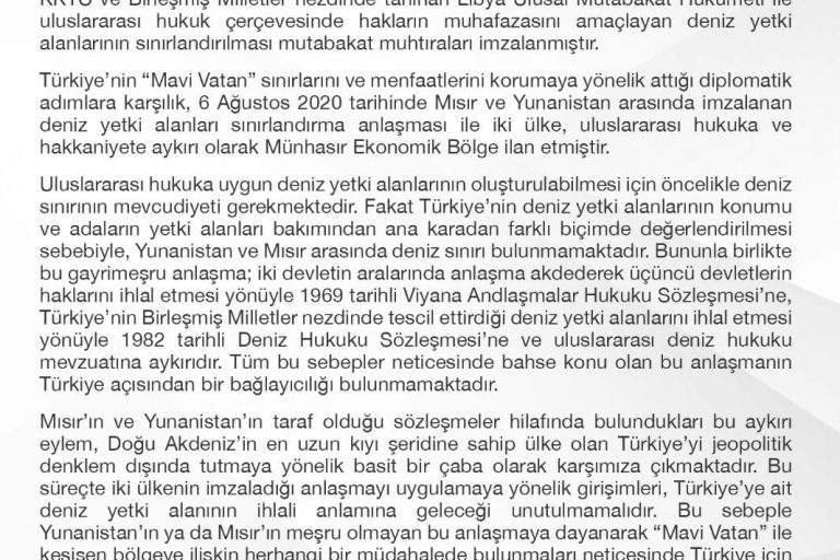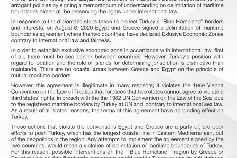 Ağu112020 PRESS STATEMENT ON THE ILLEGAL AGREEMENT SIGNED BETWEEN GREECE AND EGYPT ON THE DELIMITATION OF MARITIME BOUNDARIES