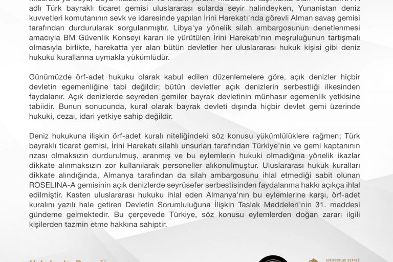 Ara62020 ALMAN FIRKATEYNİNİN TÜRK TİCARET GEMİSİNE UYGULADIĞI ULUSLARARASI HUKUKA AYKIRI MÜDAHALEYE İLİŞKİN AÇIKLAMA