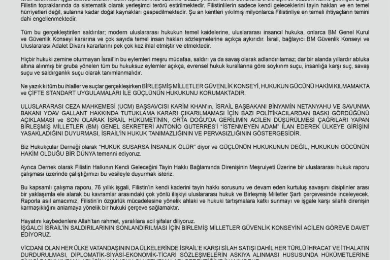 Haz252025 Hukukçular Derneği & WOLAS Ortak Raporu: Filistin’in Meşru Mücadelesi “The Legitimacy of the Palestinian People’s Struggle for Freedom and Self-Determination under International Law”