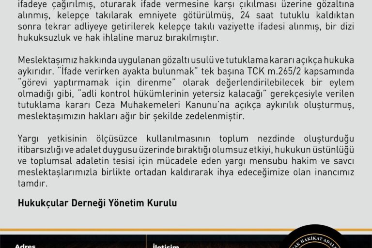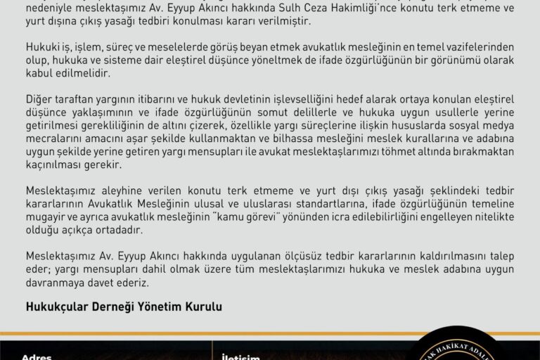 Tem32024 Meslektaşımız Av. Eyyup Akıncı Hakkında Verilen Adli Tedbir Kararına İlişkin Basın Açıklamamız