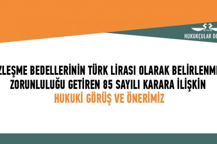 Eyl152018 SÖZLEŞME BEDELLERİNİN TÜRK LİRASI OLARAK BELİRLENMESİ ZORUNLULUĞU GETİREN 85 SAYILI KARARA İLİŞKİN HUKUKİ GÖRÜŞ VE ÖNERİMİZ