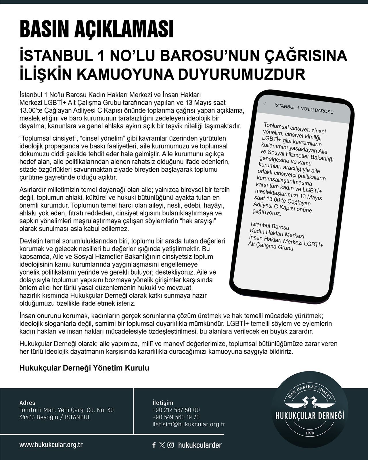 İstanbul 1 No’lu Barosu’nun Çağrısına İlişkin Basın Açıklamamız