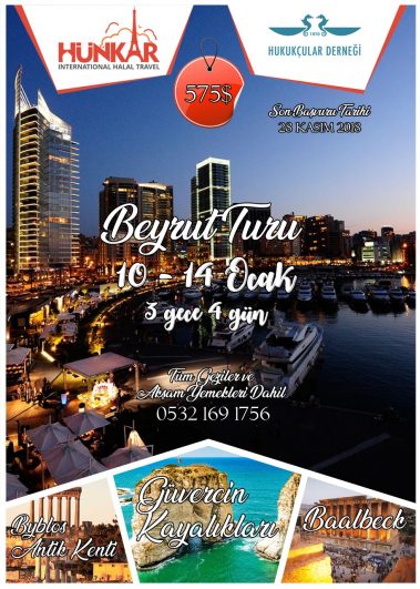 Hukukçular Derneği Gezi Komisyonu olarak dördüncü yurtdışı gezimizi Beyrut’a düzenliyoruz.