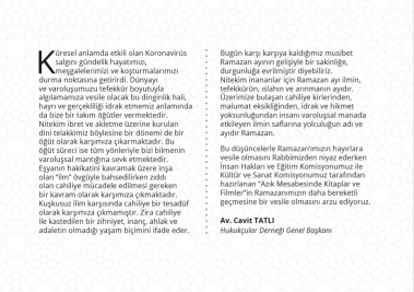 Hukukçular Derneği Eğitim Komisyonu ile Kültür ve Sanat Komisyonu tarafından hazırlanan “Ramazan Boyunca Azık Mesabesinde Kitaplar ve Filmler” çalışmamızı gözbebeğimiz çocuklarımızı da unutmaksızın takdirlerinize sunarken; Ramazanımızın ıslahın, arınmanın, cahiliye kirlerinden uzaklaşmanın vesilesi olmasını bir kez daha Rabbimizden niyaz ediyoruz.